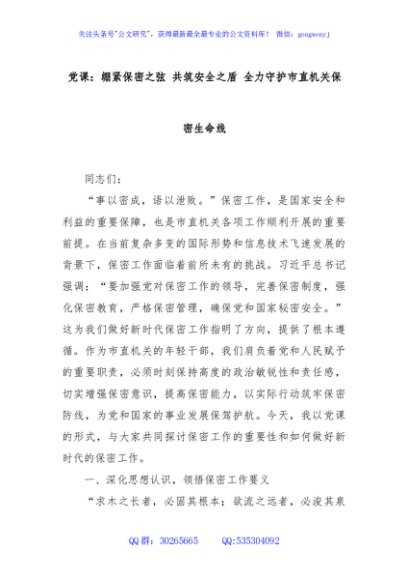 / 党课:绷紧保密之弦 共筑安全之盾 全力守护市直机关保密生命线
