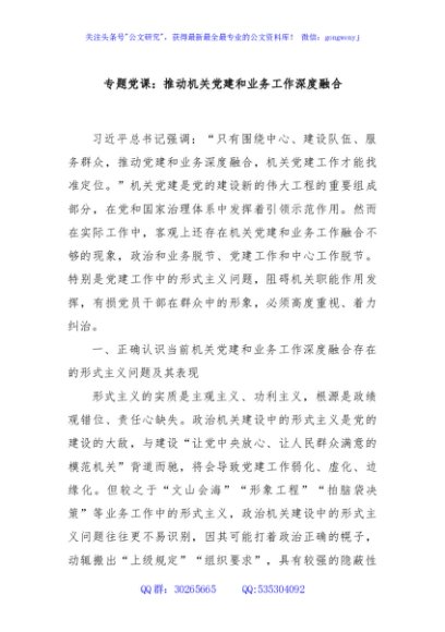 / 专题党课:推动机关党建和业务工作深度融合