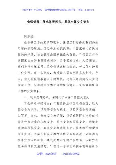 / 党课讲稿:强化保密担当,共筑乡镇安全壁垒