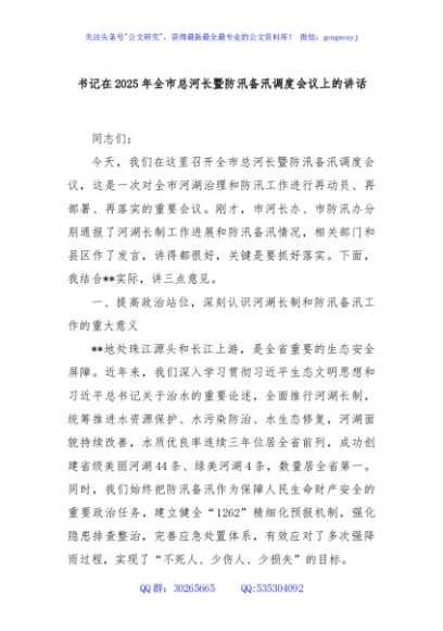 / 书记在2025年全市总河长暨防汛备汛调度会议上的讲话