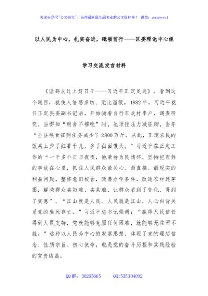 / 以人民为中心,扎实奋进,砥砺前行——区委理论中心组学习交流发言材料