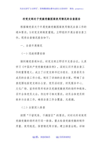 / 村党支部关于党旗党徽图案使用情况的自查报告