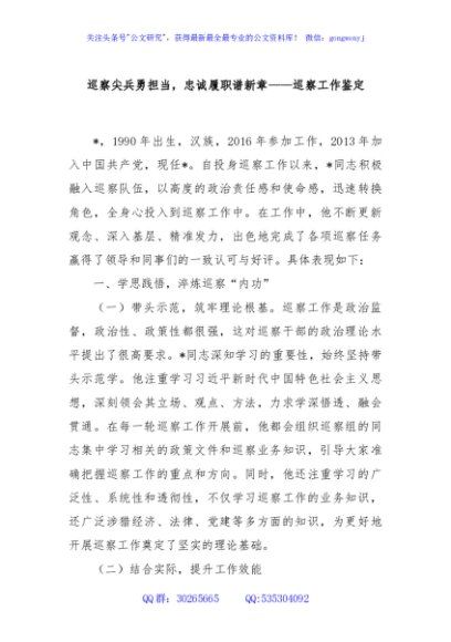 / 巡察尖兵勇担当,忠诚履职谱新章——巡察工作鉴定