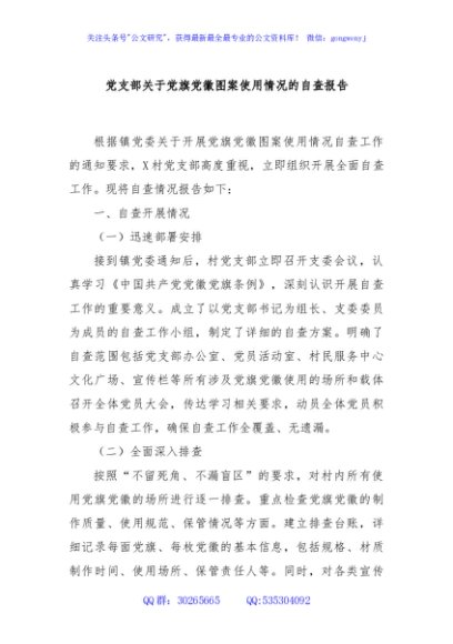 / 党支部关于党旗党徽图案使用情况的自查报告