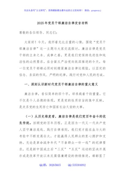 / 2025年党员干部廉洁自律发言材料