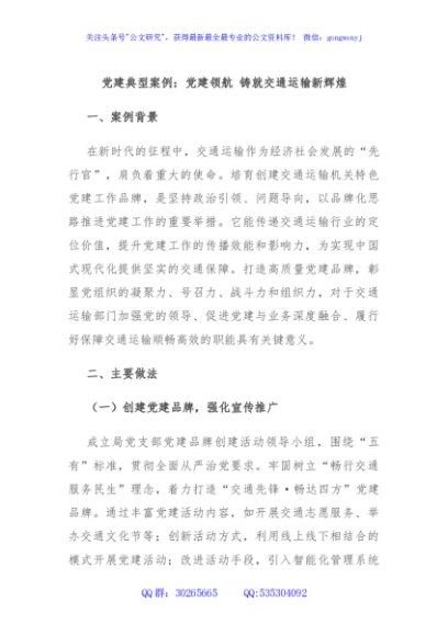 / 党建典型案例:党建领航 铸就交通运输新辉煌