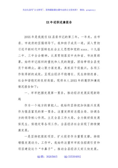 / XX年述职述廉报告