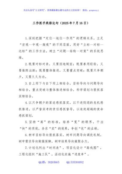 / 工作抓手类排比句(2025年7月16日)