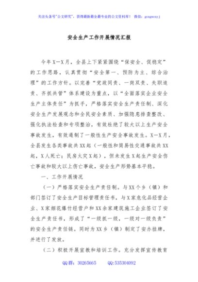 / 安全生产工作开展情况汇报