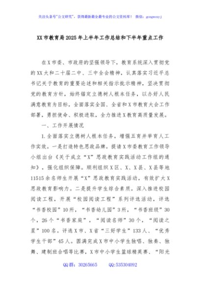 / XX市教育局2025年上半年工作总结和下半年重点工作