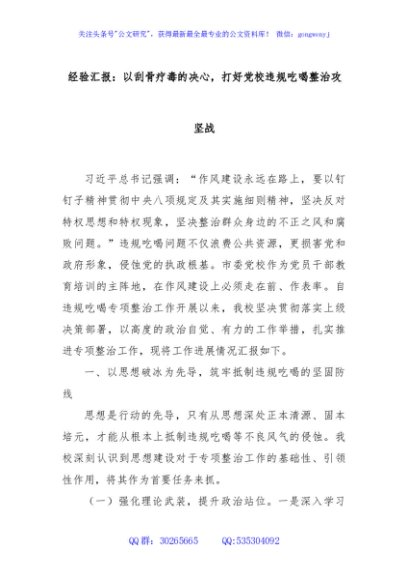/ 经验汇报:以刮骨疗毒的决心,打好党校违规吃喝整治攻坚战
