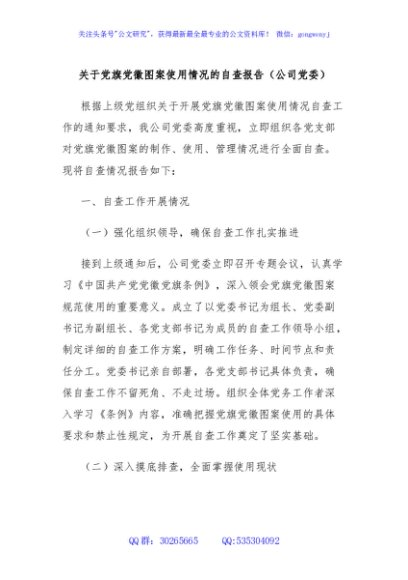 / 关于党旗党徽图案使用情况的自查报告(公司党委)