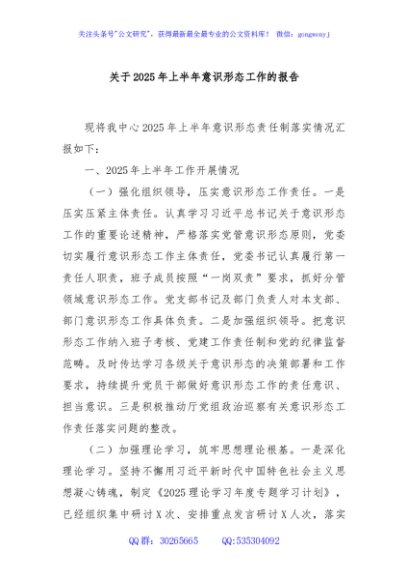 / 关于2025年上半年意识形态工作的报告