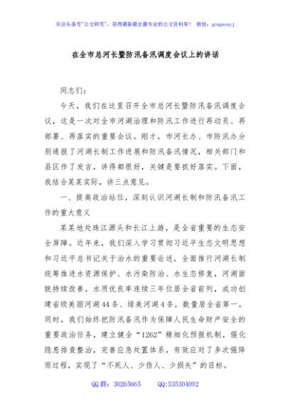 / 在全市总河长暨防汛备汛调度会议上的讲话
