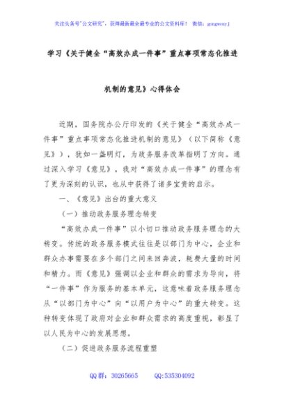 / 学习《关于健全“高效办成一件事”重点事项常态化推进机制的意见》心得体会