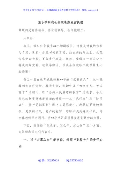 / 某小学副校长任职表态发言提纲