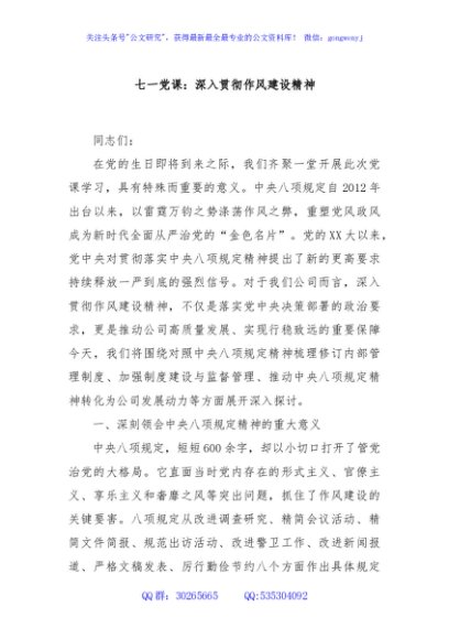 七一党课:深入贯彻作风建设精神