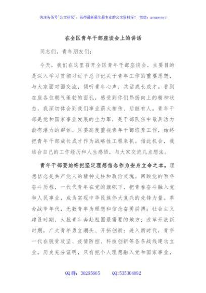 / 在全区青年干部座谈会上的讲话