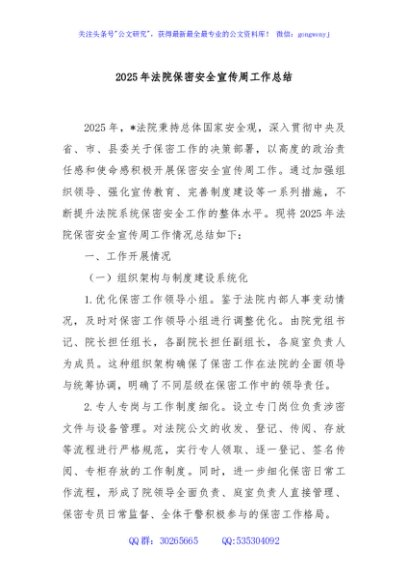 2025年法院保密安全宣传周工作总结