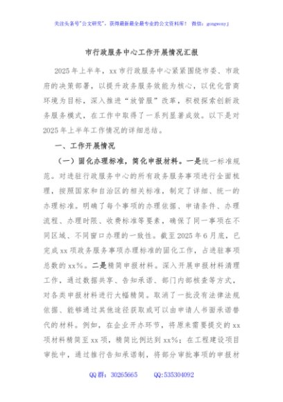 / 市行政服务中心工作开展情况汇报