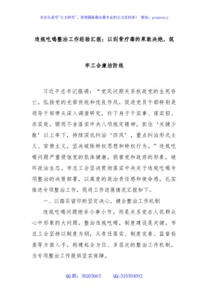 / 违规吃喝整治工作经验汇报:以刮骨疗毒的果敢决绝,筑牢工会廉洁防线