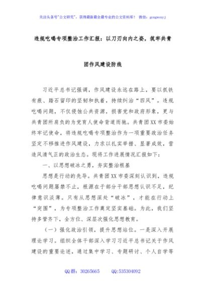 / 违规吃喝专项整治工作汇报:以刀刃向内之姿,筑牢共青团作风建设防线