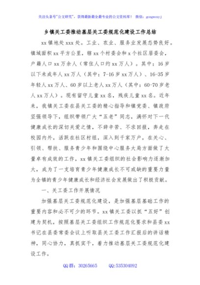 / 乡镇关工委推动基层关工委规范化建设工作总结
