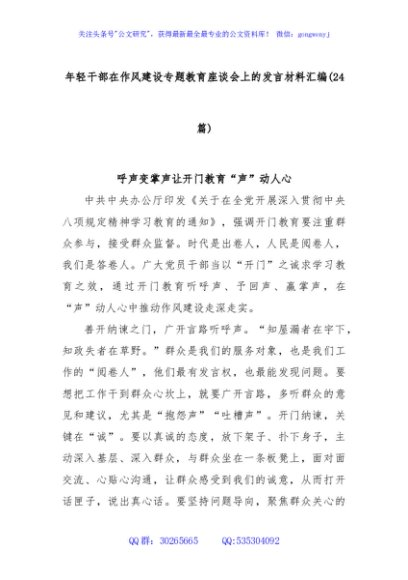 / (24篇)年轻干部在作风建设专题教育座谈会上的发言材料汇编