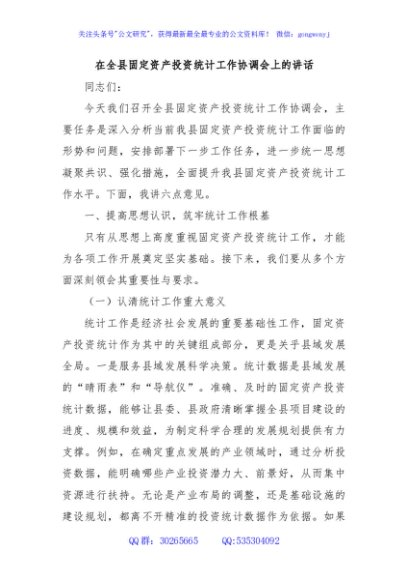 / 在全县固定资产投资统计工作协调会上的讲话
