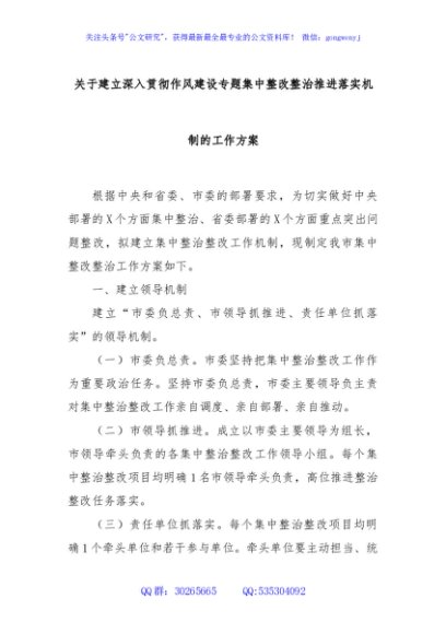 / 关于建立深入贯彻作风建设专题集中整改整治推进落实机制的工作方案