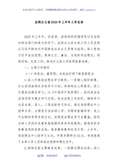 / 法院办公室2025年上半年工作总结