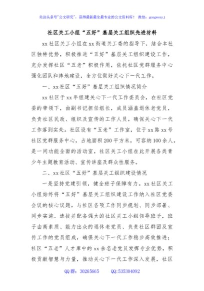 / 社区关工小组“五好”基层关工组织先进材料