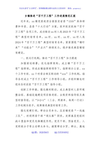乡镇推进“百千万工程”工作进展情况汇报