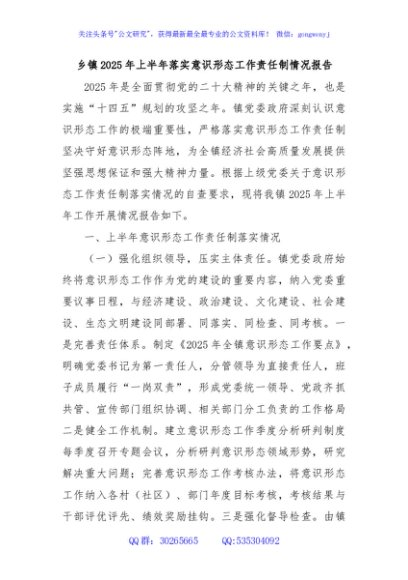 / 乡镇2025年上半年落实意识形态工作责任制情况报告