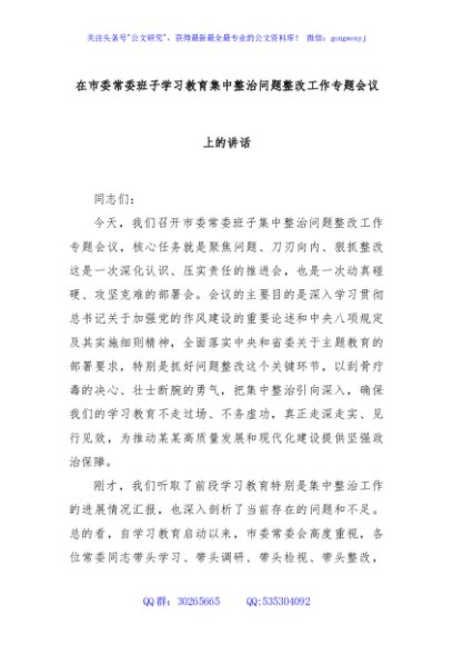 / 在市委常委班子学习教育集中整治问题整改工作专题会议上的讲话