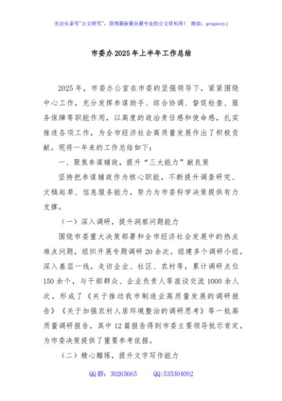 / 市委办2025年上半年工作总结