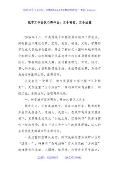 / 城市工作会议心得体会:五个转变、五个注重