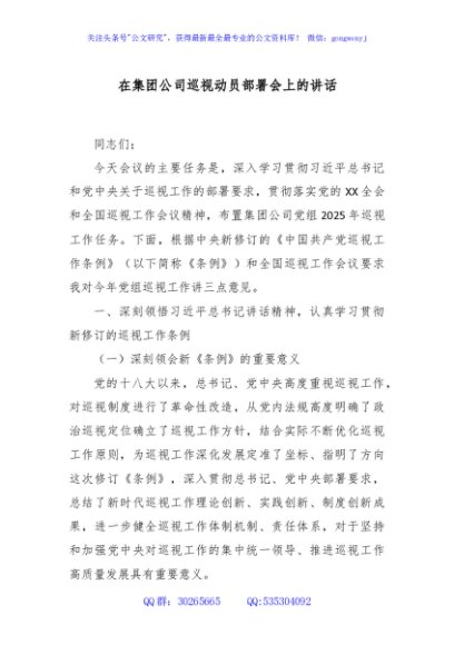 / 在集团公司巡视动员部署会上的讲话