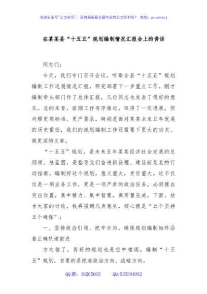 / 在某某县“十五五”规划编制情况汇报会上的讲话