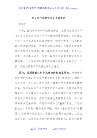 / 在全市作风建设大会上的讲话