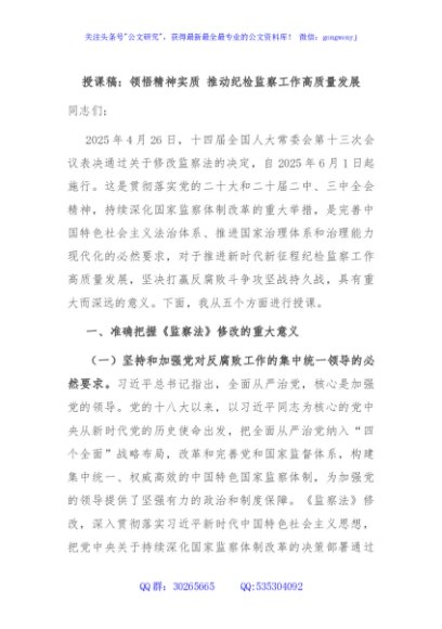 / 授课稿:领悟精神实质 推动纪检监察工作高质量发展