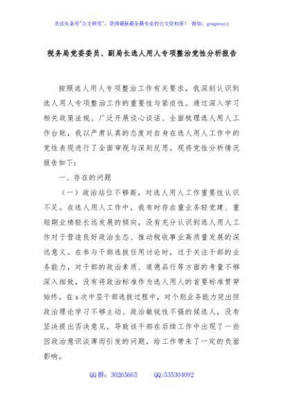 / 税务局党委委员、副局长选人用人专项整治党性分析报告