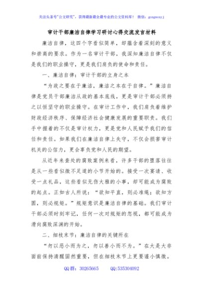 / 审计干部廉洁自律学习研讨心得交流发言材料