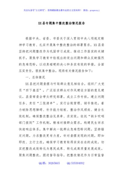 / XX县专题集中整改整治情况报告