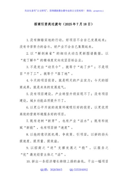/ 招商引资类过渡句(2025年7月18日)