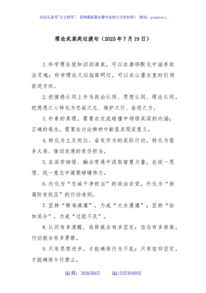 / 理论武装类过渡句(2025年7月19日)