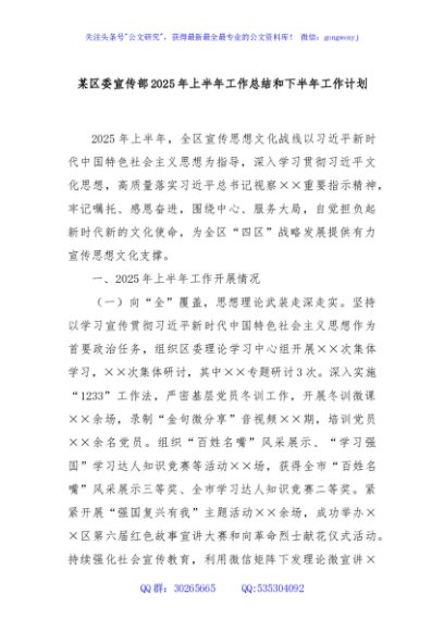 / 某区委宣传部2025年上半年工作总结和下半年工作计划