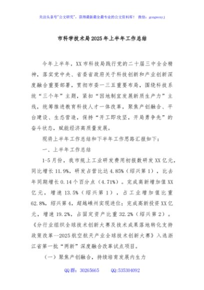/ 市科学技术局2025年上半年工作总结