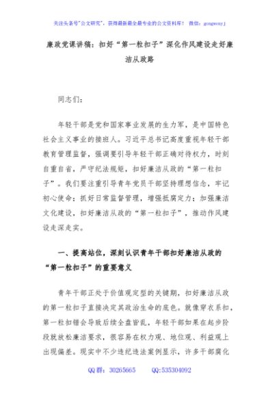 / 廉政党课讲稿:扣好“第一粒扣子”深化作风建设走好廉洁从政路