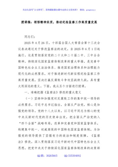 授课稿:领悟精神实质,推动纪检监察工作高质量发展